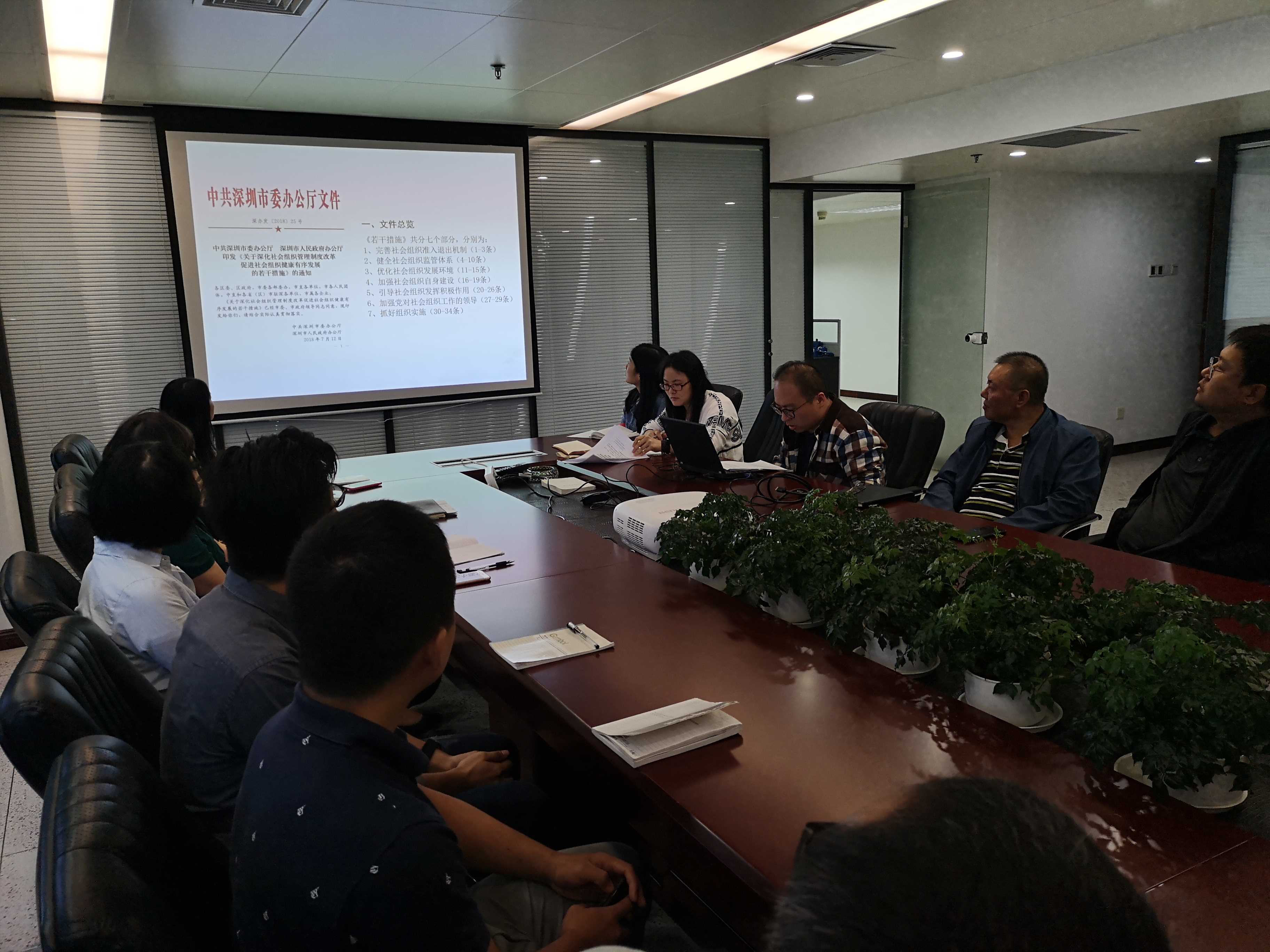 由倪奇昕同志主讲,向大家介绍了《关于深化社会组织管理制度改革促进社会组织健康有序发展的若干措施》的主要内容。大家就文件涉及的内容,以及如何优化研究会机构发展等问题开展深入讨论。